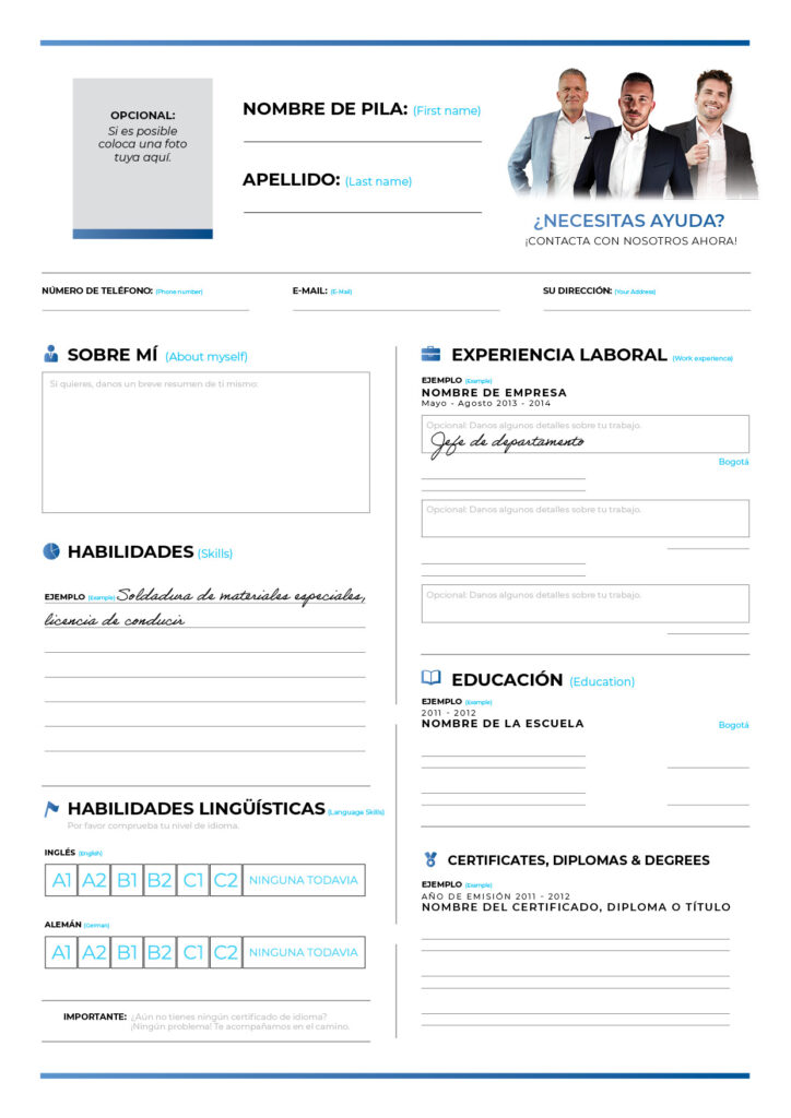 Si aún no tienes un CV, utiliza nuestra plantilla de CV. Rellena tus datos personales, hazte una foto y sube tu CV.
